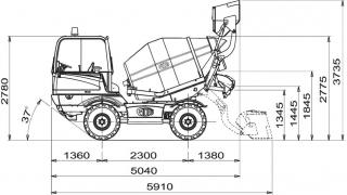 Rotasi drum dengan menggunakan pompa piston dengan berbagai laju aliran dan motor hidrolik orbital dalam sirkuit tertutup dengan kontrol listrik sangat kecil yang ditempatkan di kabin dan pada bagian belakang mesin.