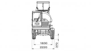 Lengan pemuat dengan mekanisme kinematik kompensasi mandiri, silinder pengangkat dan loader kerja ganda, palka yang dikontrol secara elektro-hidraulik dengan fungsi tip-off standar.