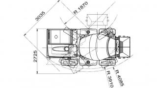 Rotasi drum dengan menggunakan pompa piston dengan berbagai laju aliran dan motor hidrolik orbital dalam sirkuit tertutup dengan kontrol listrik sangat kecil yang ditempatkan di kabin dan pada bagian belakang mesin.