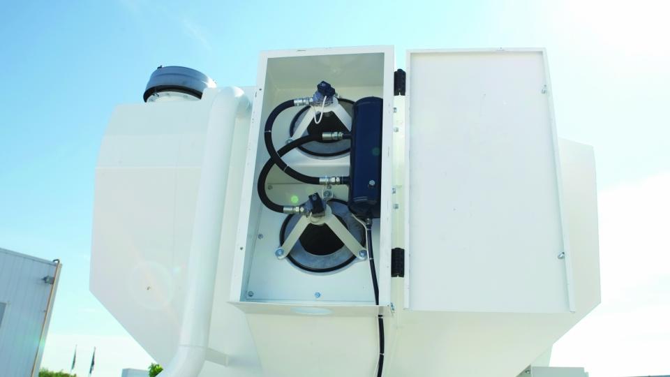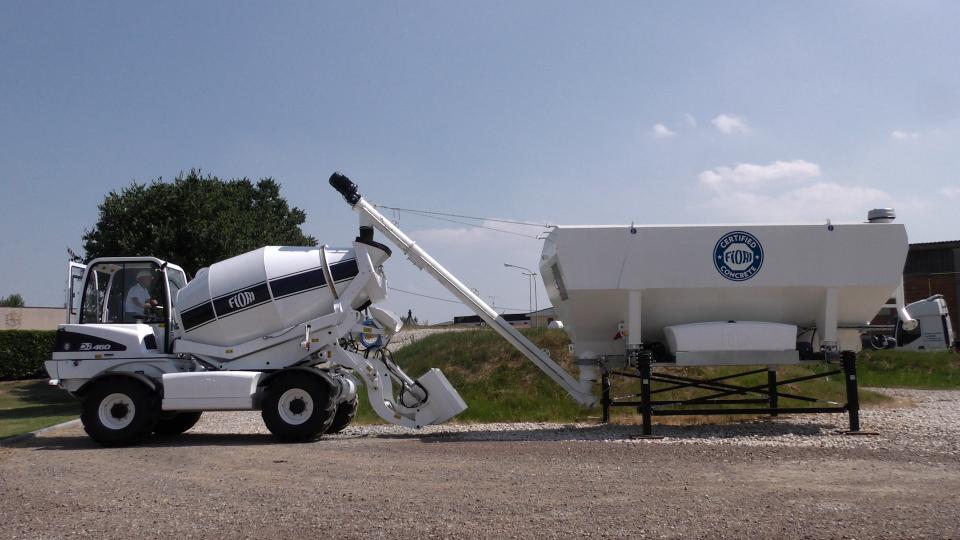 FIORI's ""HS"" silos are supplied complete with external vibrator, air fluidizing nozzles, inclined drain augers, internal self-cleaning filter, plastic water tanks, control unit and electronic weighing system with load cells ( Canlink for remote control (Bluetooth) from the CBV 2.0 on board the self-loading concrete mixer).