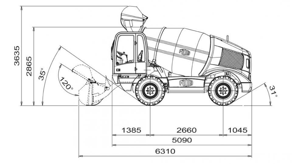 The DB X35 (transportable in containers) is the most compact & economical front-end self-loading concrete mixer in its class. This extremely compact, highly agile & stable mixer guarantees a maximum yield of 3.5 m³ of concrete in every batch. The wide cabin windscreen along-with the specially designed loading arms provides enhanced visibility of the highest level. Its cost-effective character, ease of use & high productivity (upto 100 cbm per day) makes it the most ideal equipment for rental purposes and for maintenance works.