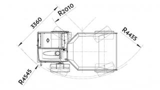 Dump body with tilting by means of 2 doubleacting jacks. Orientation over 180° for trilateral unloading by means of “heavy-duty” ball fifth wheel, with hydraulic rotation and automatic locking by means of negative brake.