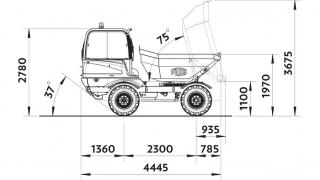 Featuring 4x4 hydrostatic transmission (four wheel drive and four wheel steering), the Fiori SW series dumpers offer outstanding manoeuvrability and also a tipper body with 180° positioning for unloading on all three sides, guaranteeing users complete site coverage and the ability to reach any spot. With a load capacity of 9,000 kg, the D 90 SW model completes the range for applications in which visibility, comfort (bridge with tilting limiter), and operator safety (level II ROPS/FOPS cab) are indispensable to ensure safety during work transporting and unloading large amounts of materials. Featuring a reverse drive system which is exclusive to Fiori, the D 90 SW guarantees safe driving whichever way you're moving, forwards or back.